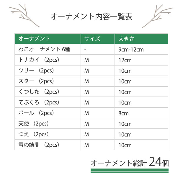 クリスマスツリー オーナメント Amie [アミ:猫のオーナメント] 150cmオーナメントセット 24個セット 木製 _[880148]【BF-SALE2】