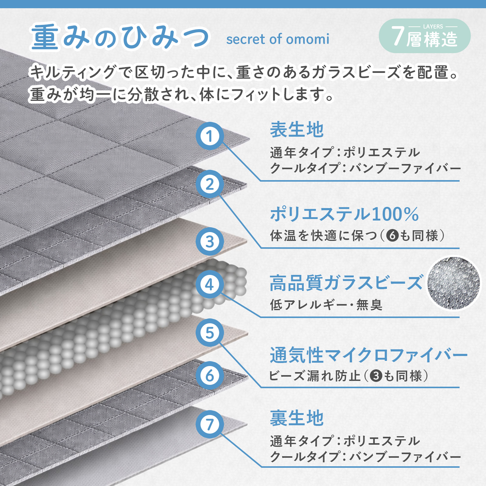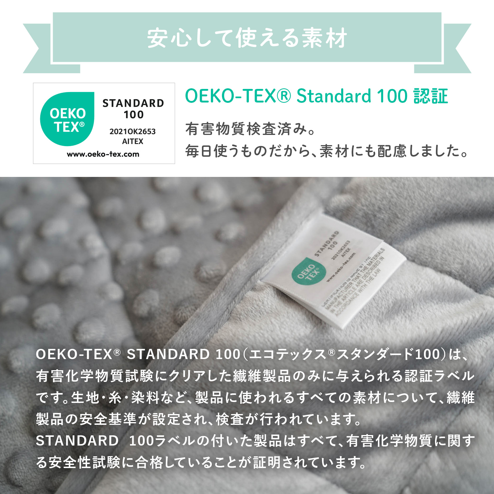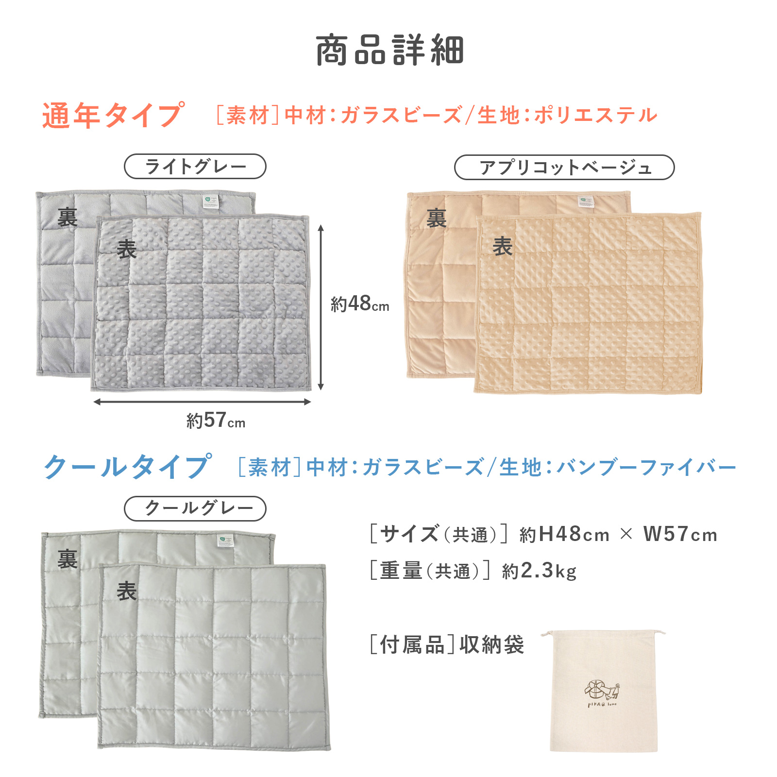 | 素材 | 【通年タイプ】中材:ガラスビーズ/生地:ポリエステル/※OEKO-TEX Standard 100 |